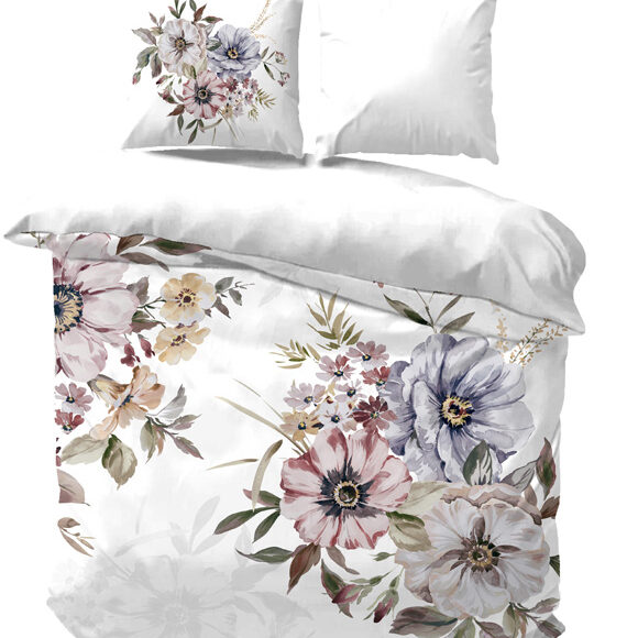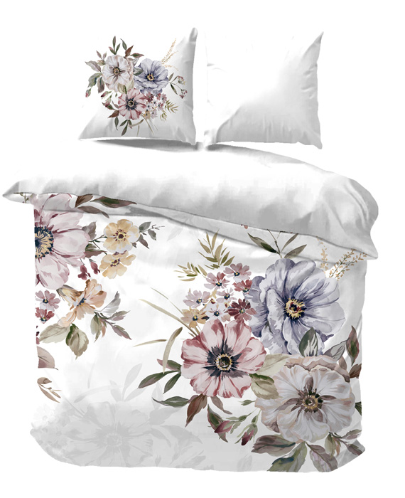 iSleep dekbedovertrek Anna bevat een prachtige botanische print. Op het witte overtrek zijn vrolijk gekleurde bloemen te zien. De achterkant van het overtrek is effen wit.