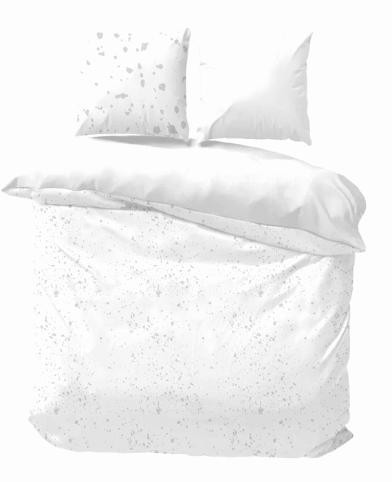 iSleep dekbedovertrek Diana heeft een staat vol met zilveren spetters op een witte achtergrond. De achterkant van dit overtrek is effen licht beige gekleurd. Dit overtrek is gemaakt van 100% hoogwaardige kwaliteit satijn katoen (250 TC).