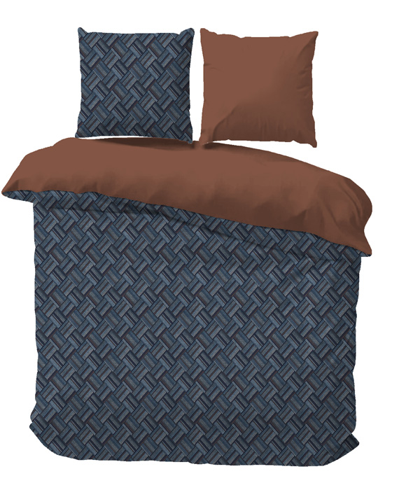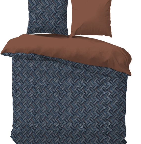 iSleep dekbedovertrek Gerrit bevat een geblokt dessin. De blokken zijn gevult met streepjes in diverse kleuren. De achterkant van het overtrek is effen bruin.