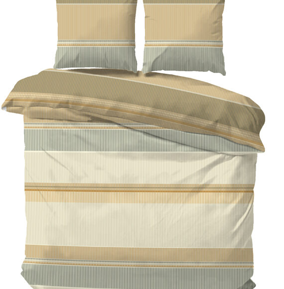iSleep dekbedovertrek Henk bestaat uit horizontale banen in verschillende groottes. Daarnaast zorgen de verticale streepjes voor een mooi grafisch effect in neutrale kleuren. Dit dekbedovertrek is gemaakt van 100% katoen satijn.