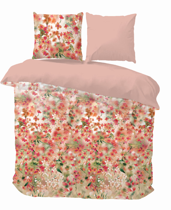 iSleep dekbedovertrek Martine heeft een prachtige bloemenprint met diverse roze, witte en groene bloemen. De achterkant van dit overtrek is effen roze. Dit overtrek is gemaakt van 100% hoogwaardige kwaliteit satijn katoen (250 TC).