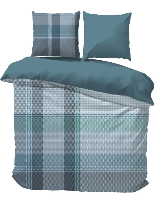 iSleep dekbedovertrek Menno bestaat uit allemaal horizontale & verticale banen in verschillende tinten blauw, alle banen zijn gevuld met een gruit patroon. Dit overtrek is gemaakt van 100% hoogwaardige kwaliteit satijn katoen (250 TC).
