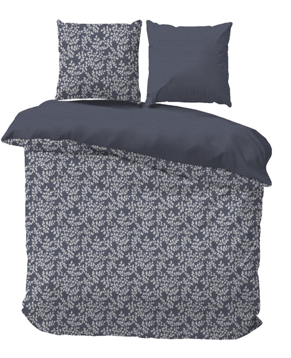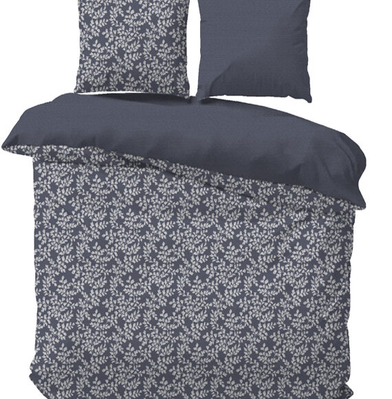 iSleep dekbedovertrek Morris bevat een prachtige bloemenslinger van onder naar boven. Op de kussenslopen zie je hetzelfde patroon terug. De achterkant van dit overtrek is effen blauw.