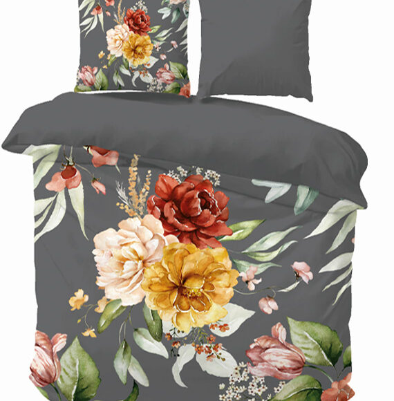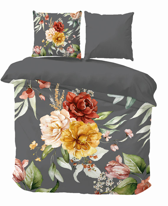 iSleep dekbedovertrek Simone bestaat uit een prachtige bloemenprint op een donker grijze achtergrond. De achterkant van dit overtrek is effen. Dit overtrek is gemaakt van 100% hoogwaardige kwaliteit satijn katoen (250 TC).